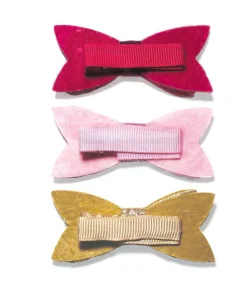 3 barrettes pailletées en forme de noeud papillon pour accessoiriser les coiffures des petites Miss.